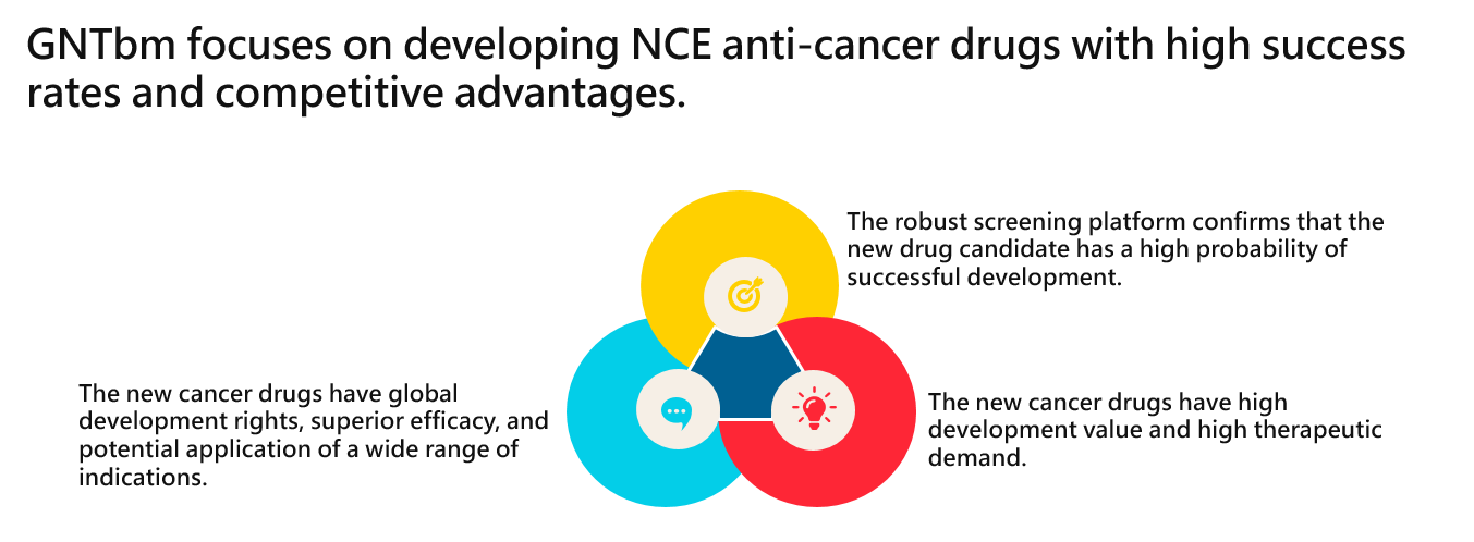 GNTbm independently develops new drugs with new chemical entities for cancer immunotherapy, aiming to meet the clinical unmet needs of patients with advanced cancer, and provides safer and more effective next-generation cancer immunotherapies to satisfy the clinical treatment needs of patients with advanced cancer.