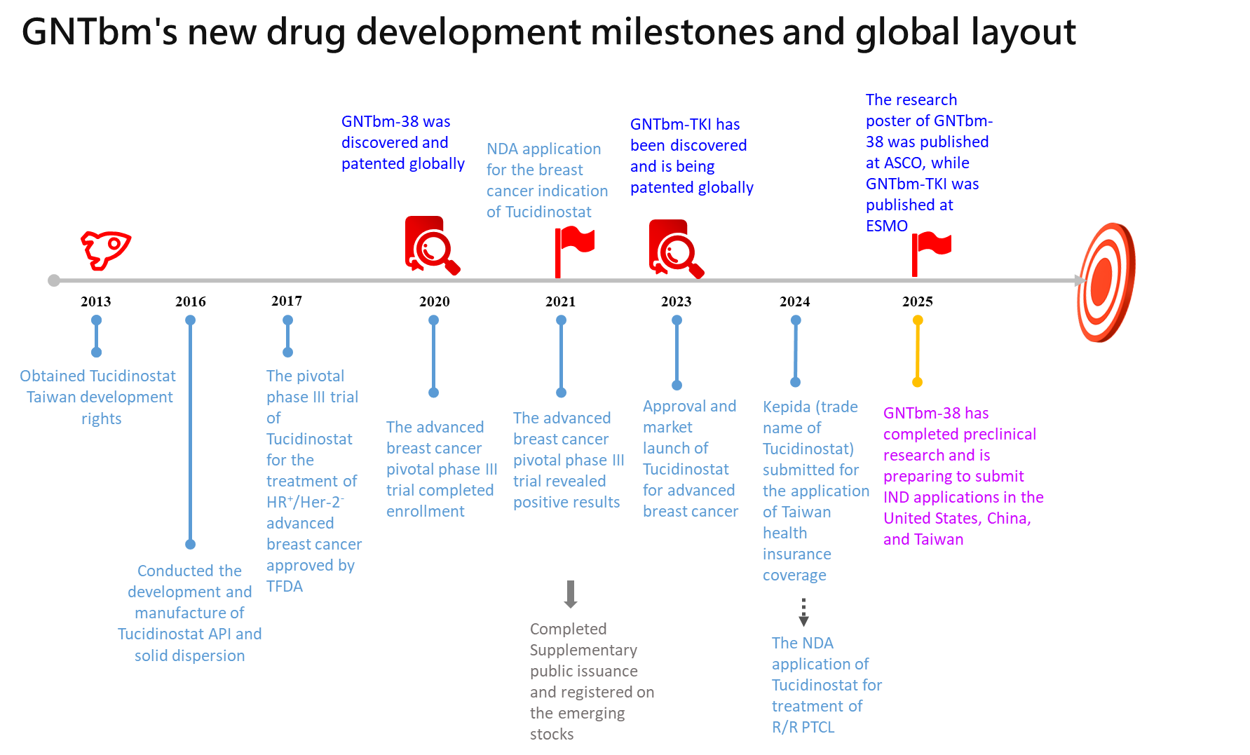 GNTbm independently develops new drugs in Taiwan, with patent layouts around the world, is dedicated to developing powerful oral cancer immunotherapy new drugs to help global patients with advanced cancer, and meanwhile secures a place in the global field of cancer immunotherapy.