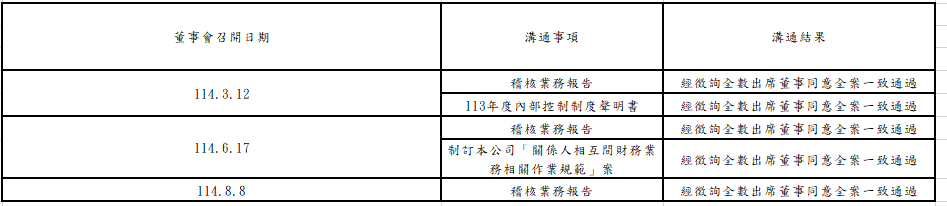 (二)、114年度獨立董事與內部稽核主管之溝通情形如下: